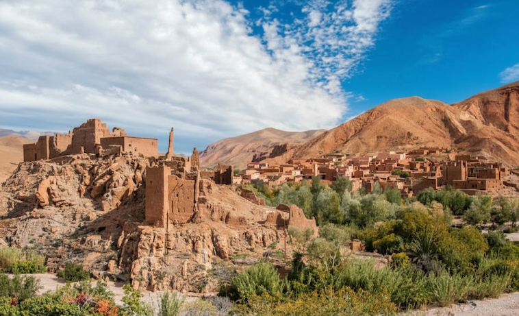 Leaving Kelaat-Mgouna and continuing on the same national road, we will arrive to the small town of Boumalen-Dades, where we take a sharp left and head up the awesome valley of Dades, with its contrasting colors of reddish mountains and vibrant green river sides. A short stop to admire the famous rocky formations of the Monkey feet, before heading to our hotel for the night.